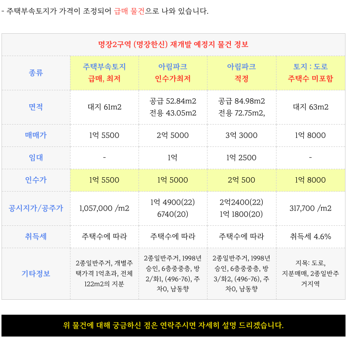 명장2구역 (명장한신) 재개발 예정지의 물건 정보부터 업데이트 해 드리겠습니다.