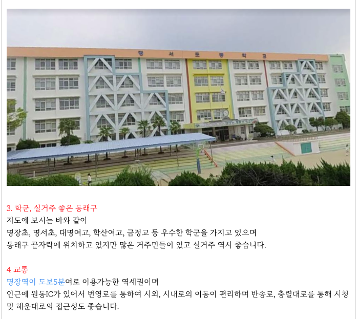 실거주 좋고 학군 좋은 동래구에 위치하고 있기에
