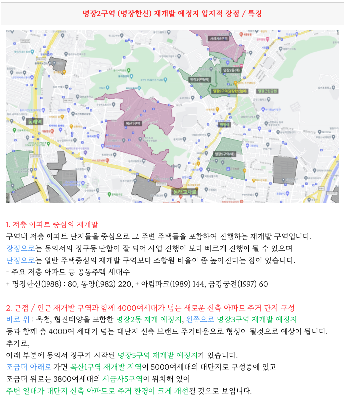 동래구 명장2구역 재개발 예정지의 입지적 특징을 정리해 드립니다.