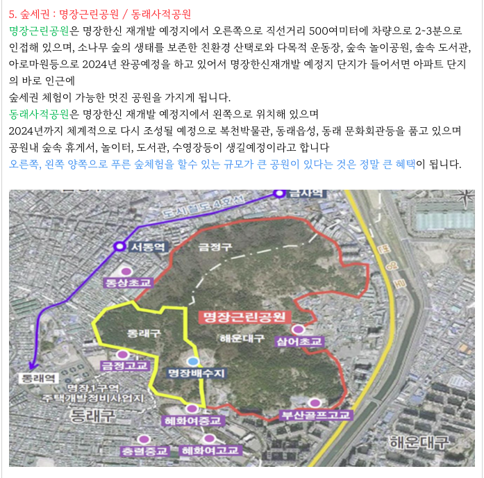 가까이에 명장근린공원, 동래 사적공원이 위치해 있어서 숲세권의 장점을 가지고 있습니다.