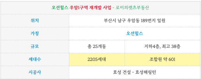 우암1구역 재개발 ( 오션힐스 ) 구역의 간략한 특징 다시 한번 정리하여 정리해 드립니다.