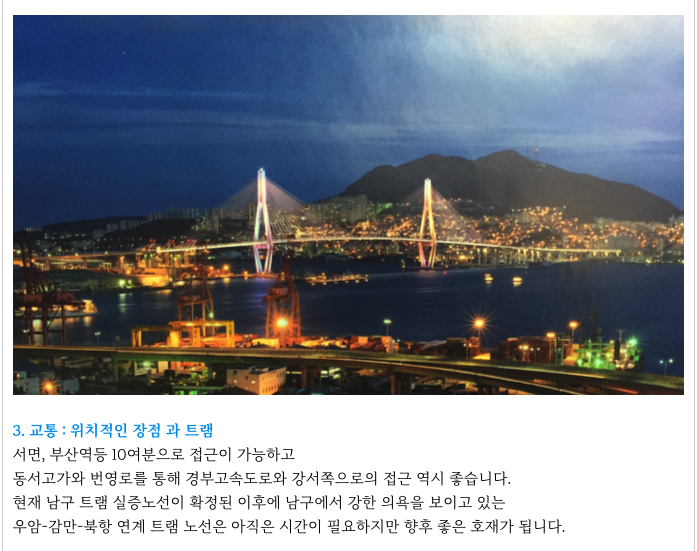 실제는 부산의 중심인 서면과 부산역으로 불과 10여분의 거리에 위치해 있는 곳으로