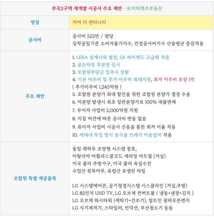 부곡2구역 재개발 시공사 GS건설의 주요 제안 내용 입니다.
