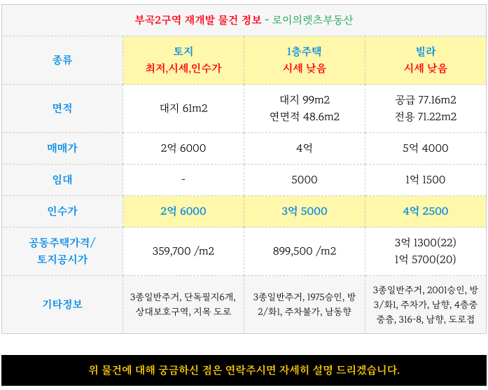 부곡2구역 재개발 토지 급매 물건등 소개 해드리겠습니다.