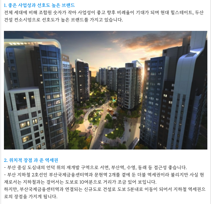 - 초품아, 준역세권, 부산중심도심