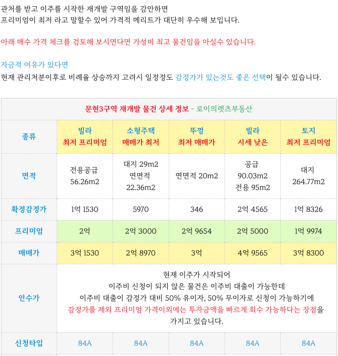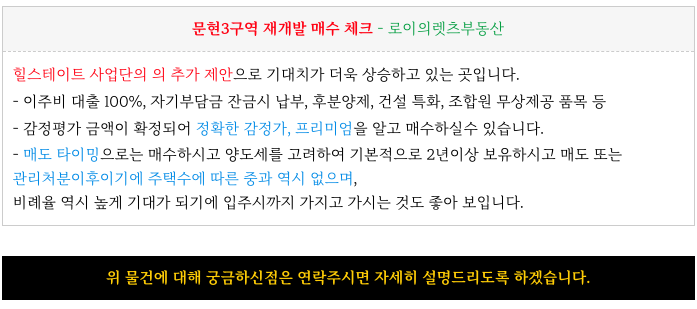 문현3구역 재개발의 피 최저 매물들 소개해 드리겠습니다.