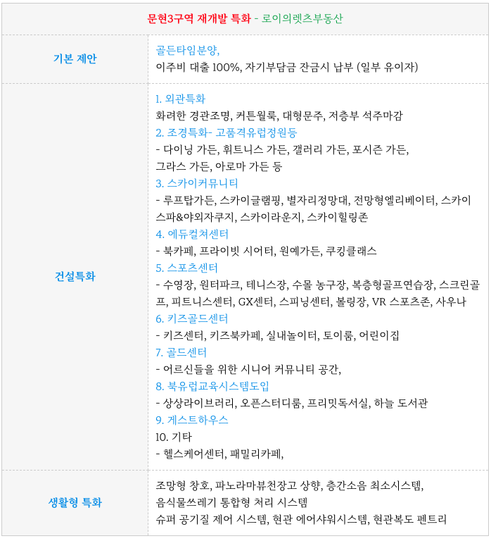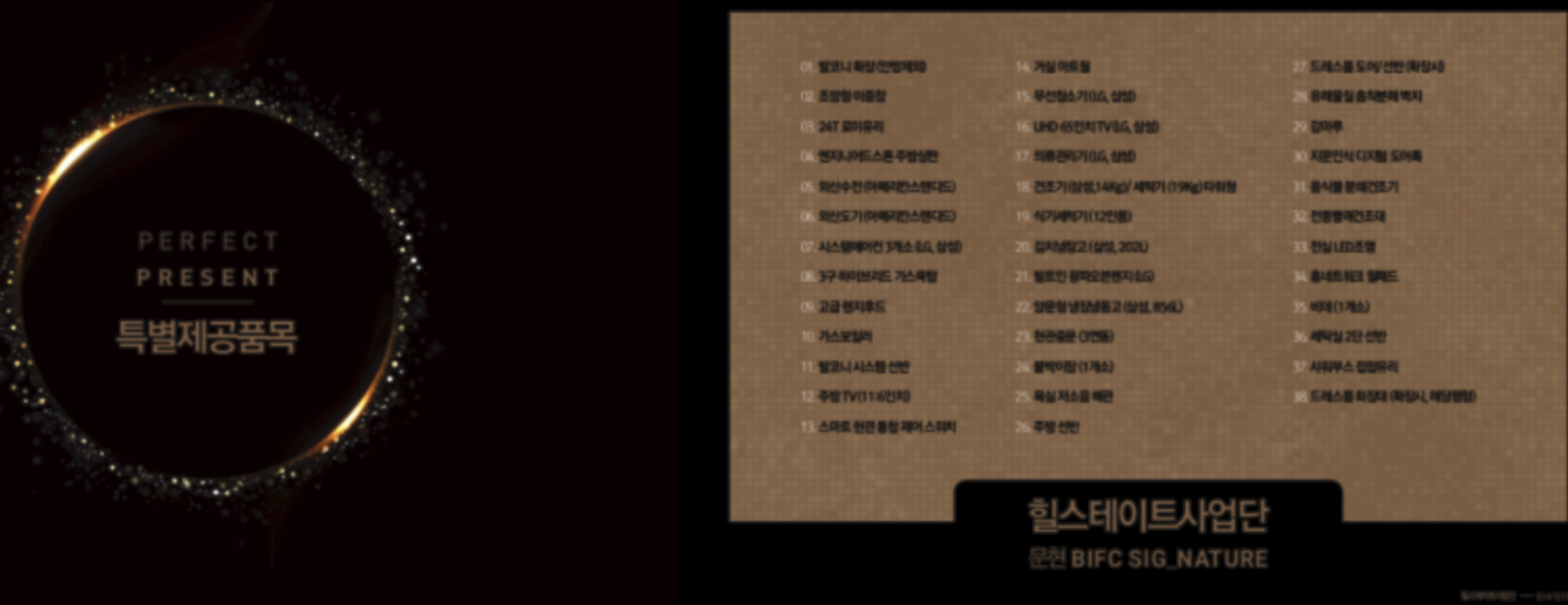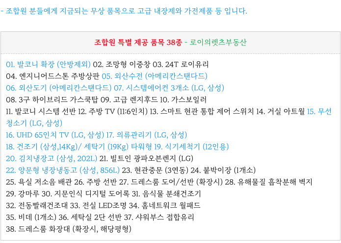 문현3구역 재개발 조합원 무상 제공 품목 들입니다.