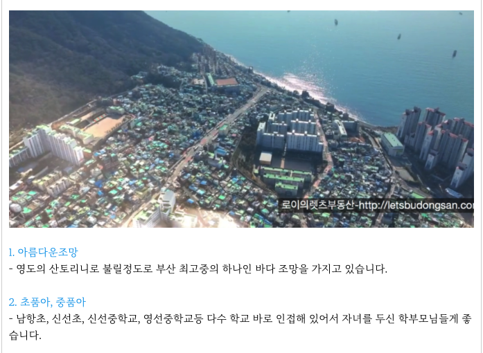 - 영도 초입에 위치 접근성 좋은, 초품아, 중품아, 개발호재 많은 변화기대되는 영도