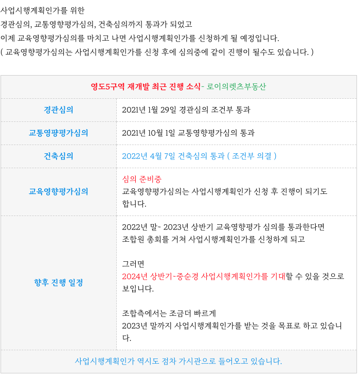 영도5구역 재개발은 사업시행계획인가를 위한 진행 상황을 정리 드립니다.