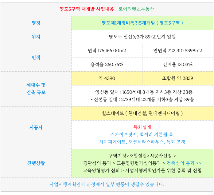 영도5구역 재개발의 진행상황과 향후 예상일정등 추가 정보는 아래 페이지를 참고 부탁드립니다.