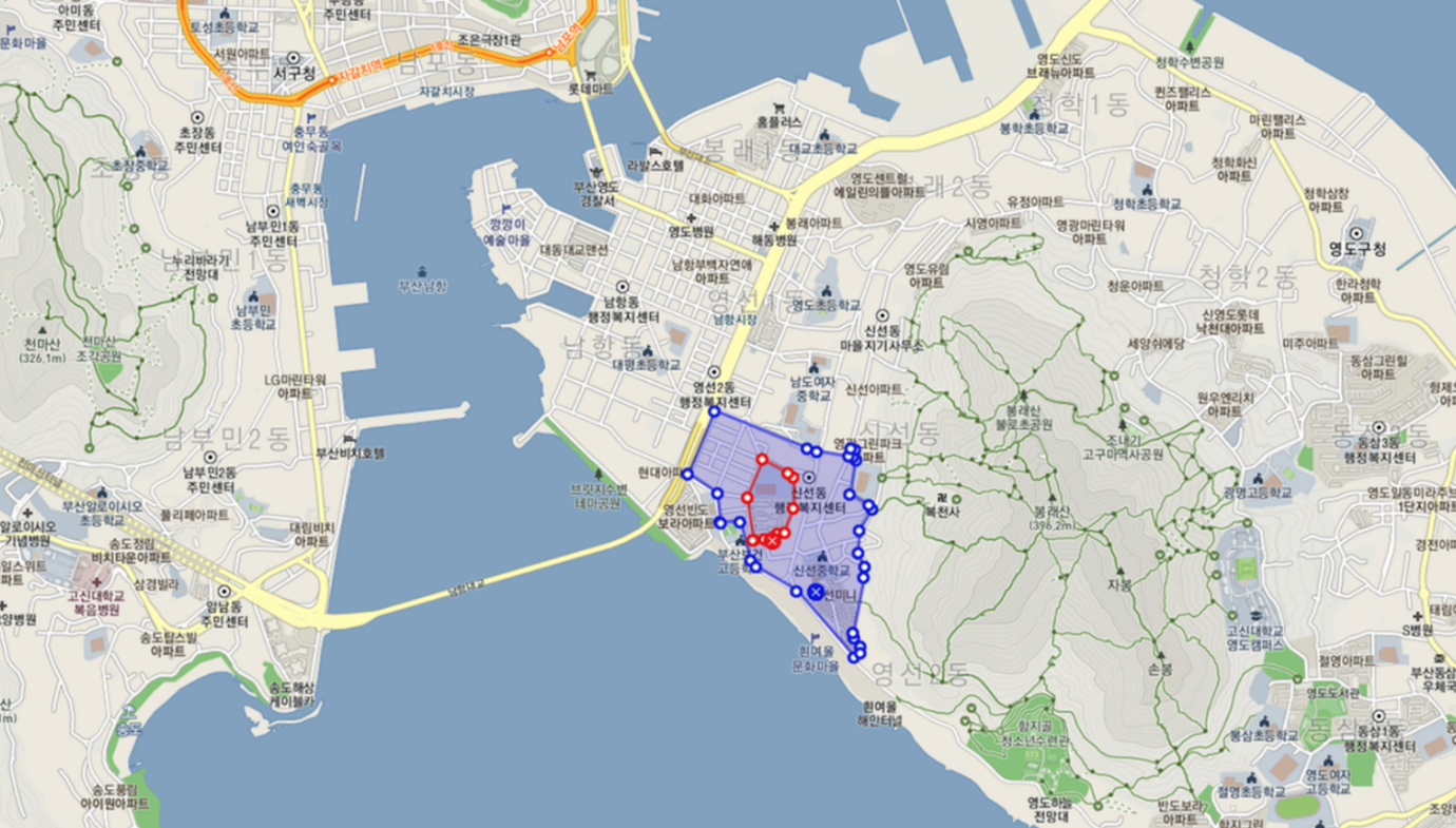 영도5구역을 가로지르는 도로와 남항초와 대원아파트를 기준으로 2개 블록으로 나뉘어져 있는데