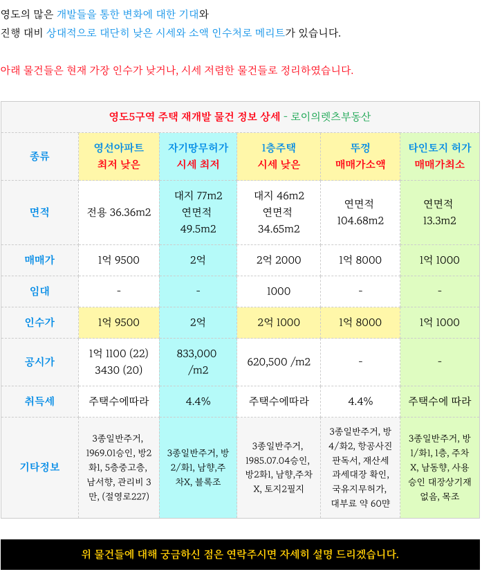 영도5구역 재개발 시세 최저 소액 물건 소개 해드리겠습니다.