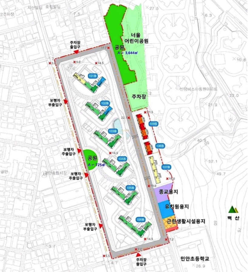 민안초등학교를 바로 곁에 품고 있는 초품아로 장정을 가지고 있습니다.