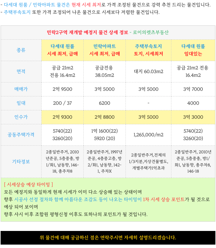 수영구 " 민락2구역 재개발 " : 다세대 원룸 / 아파트 급매물