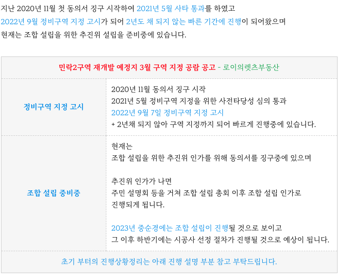 민락2구역 (가칭) 재개발 예정지의 지금까지의 진행 상황 정리등은 아래 페이지를 참고 부탁드립니다.