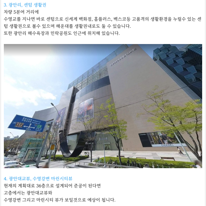 고층에서 보면 광안대교가 조망이 될 것으로 예상이 되는데 아래 부분도 참조 해보시면 좋습니다.