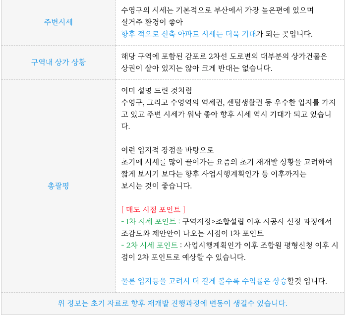 수영구 " 민락2구역 재개발 " : 민락아파트 / 다세대 최저 매물 & 진행상황