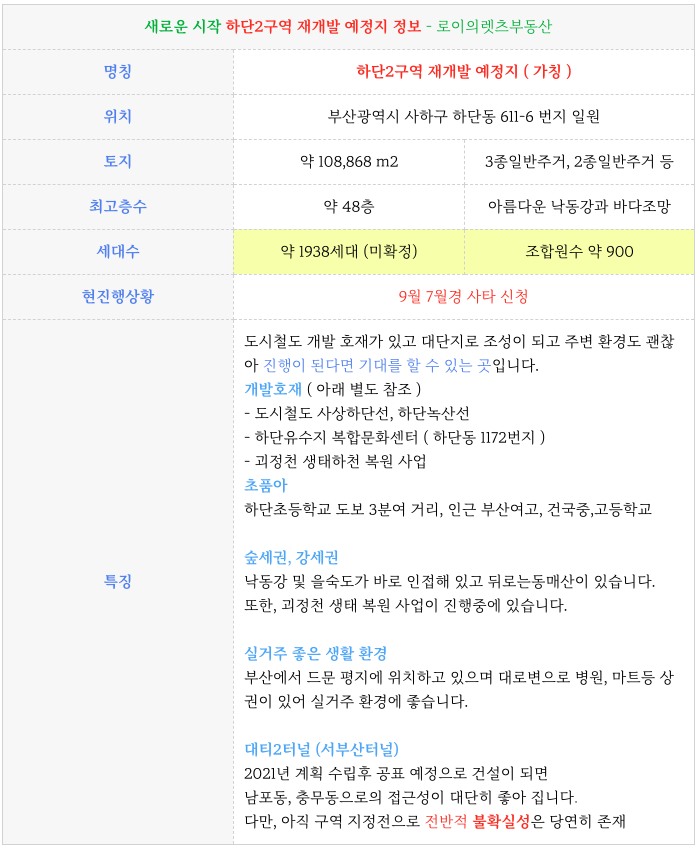 하단2구역 재개발 예정지 의 현재까지의 진행 상황 등 추가 정보는 아래 페이지를 참고 부탁드립니다.