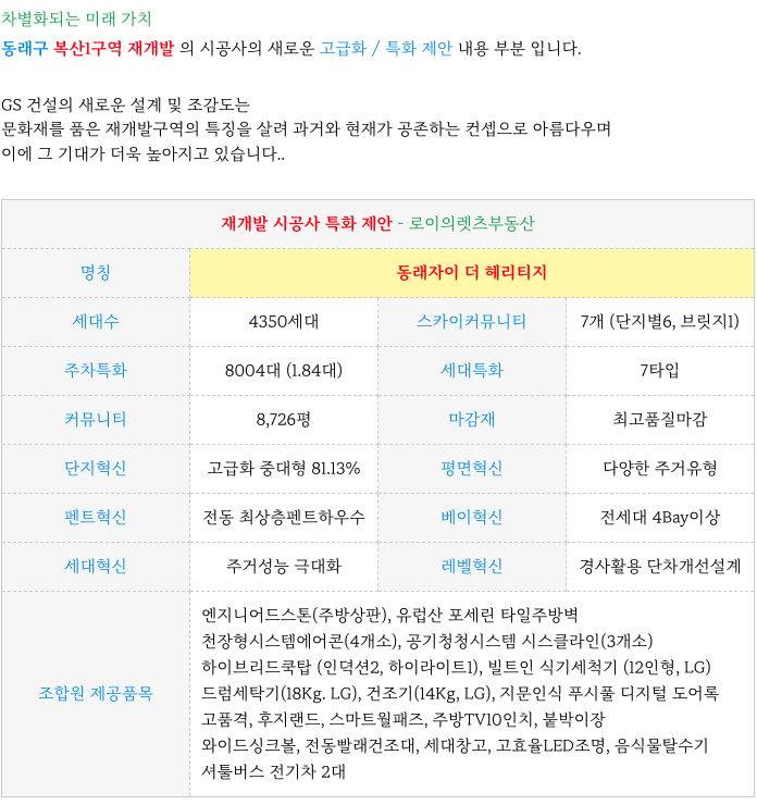 시공사로는 부산에서 선호도가 높은 GS건설이 선정되어 있고