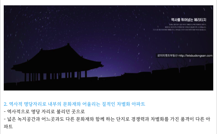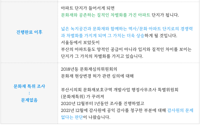 문화재와 함께하는 아파트가 조성이 된다는 것이 가장 큰 특징 입니다.