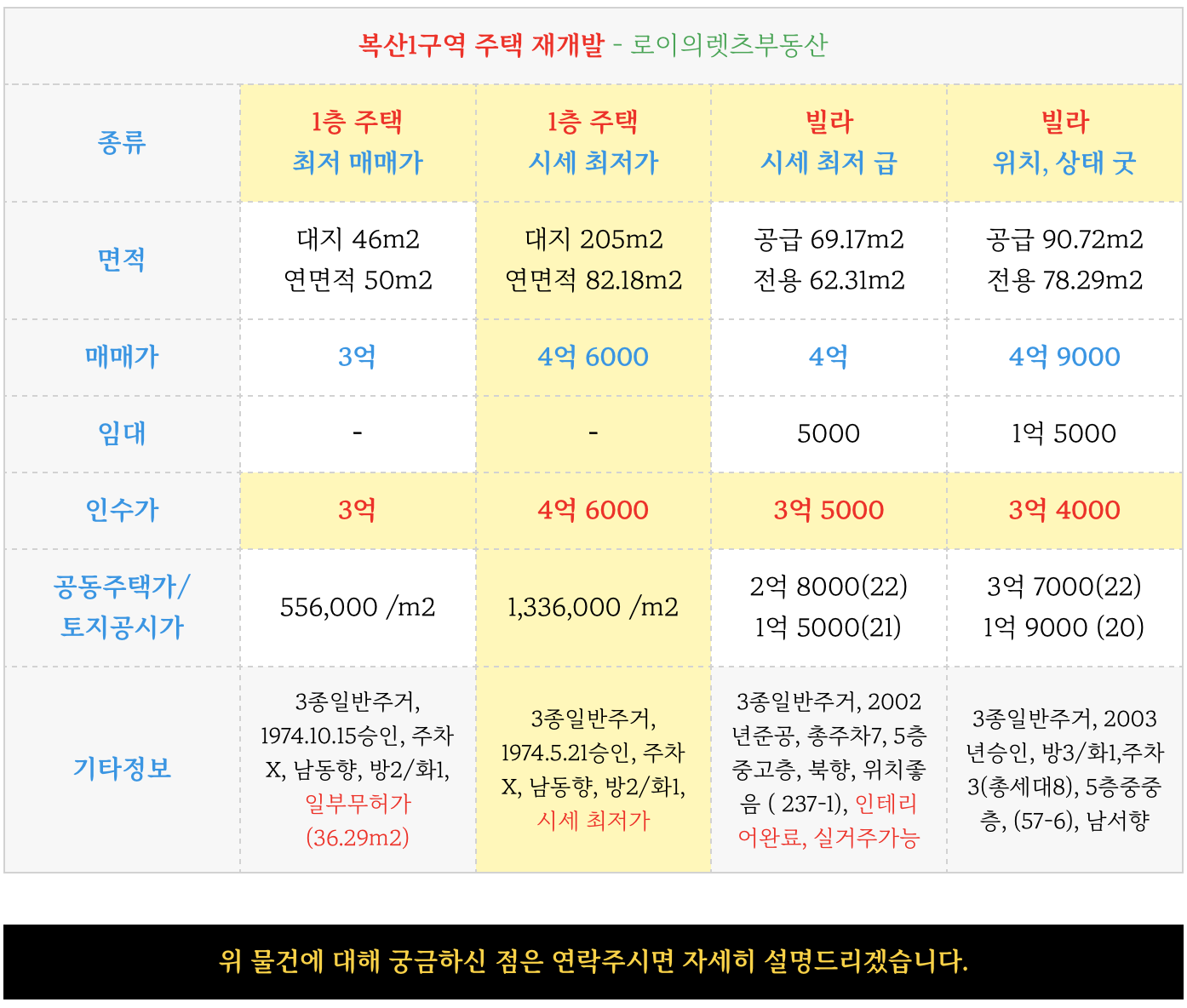 복산1구역 재개발 급 물건들 정리하여 소개해 드립니다.