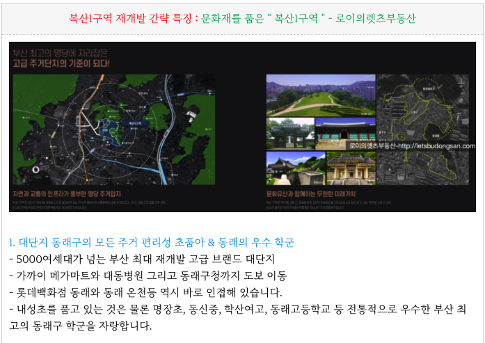 동래구 복산1구역 재개발 의 특징을 다시 한번 간략히 정리하였습니다.