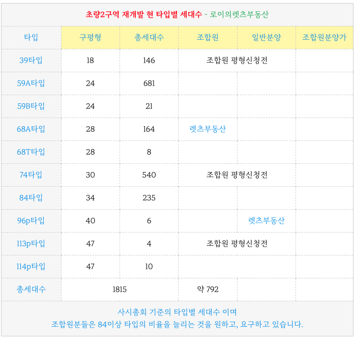 조합원분들의 다수가 84타입 이상의 세대수를 더 늘리는 것을 원하고 있기 때문에