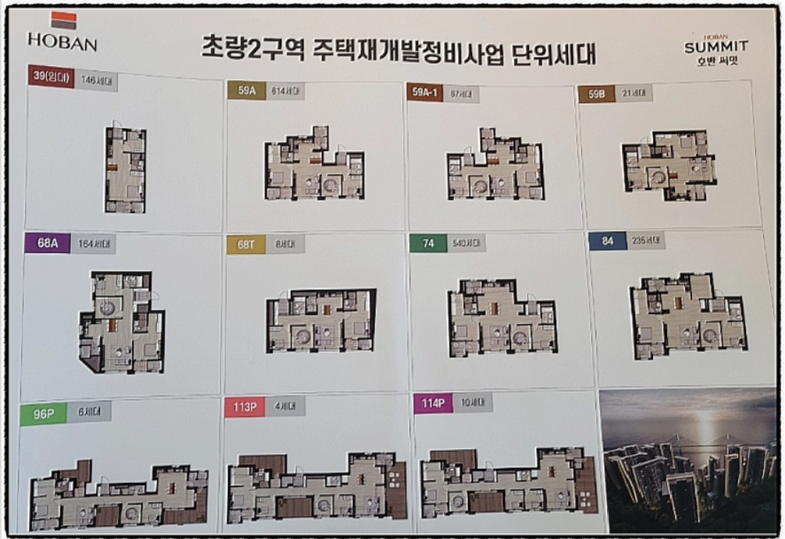 초량2구역 재개발의 타입별 세대수 입니다.