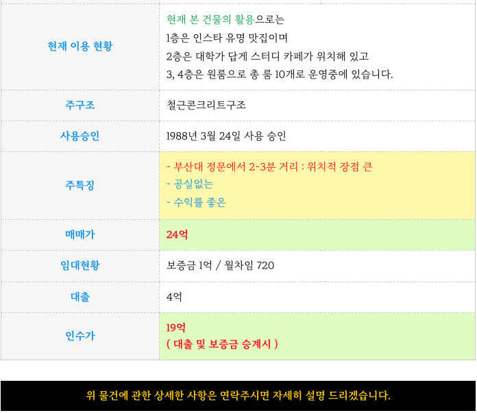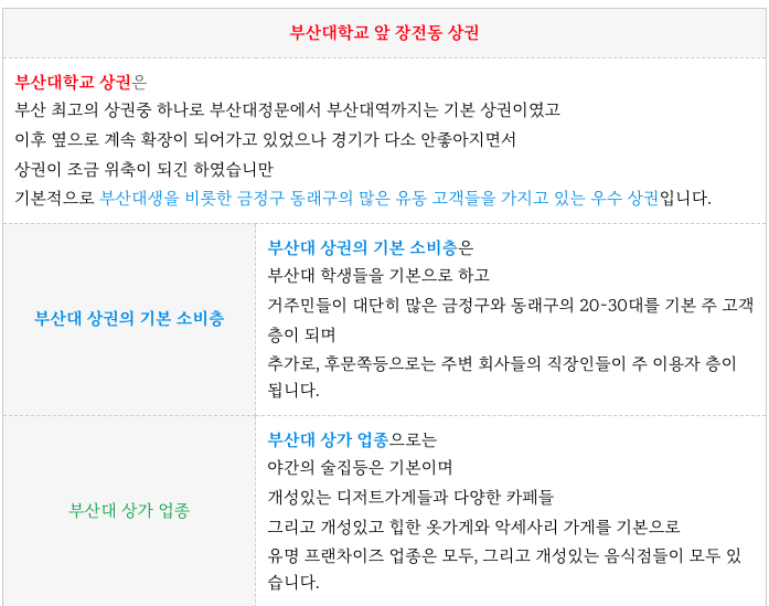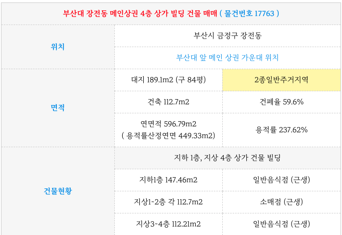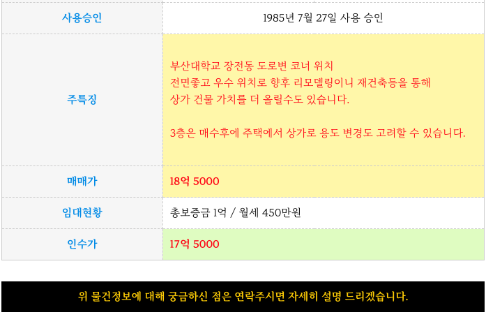 장전동 부산대 앞 메인 상권에 위치한 4개 매매 물건 정보 정리 드립니다.