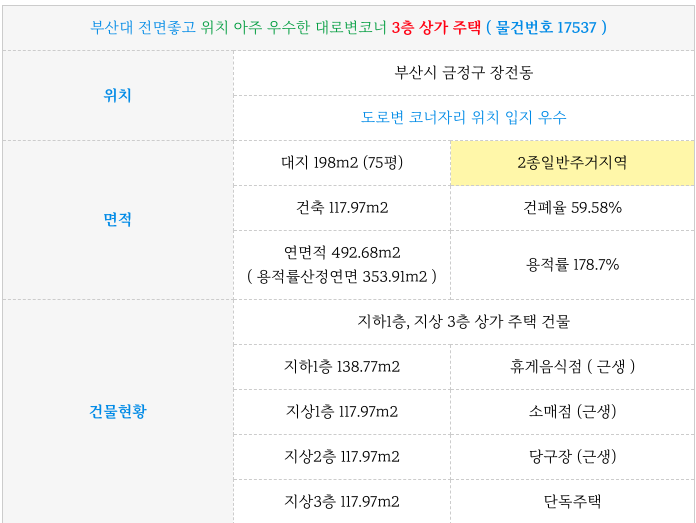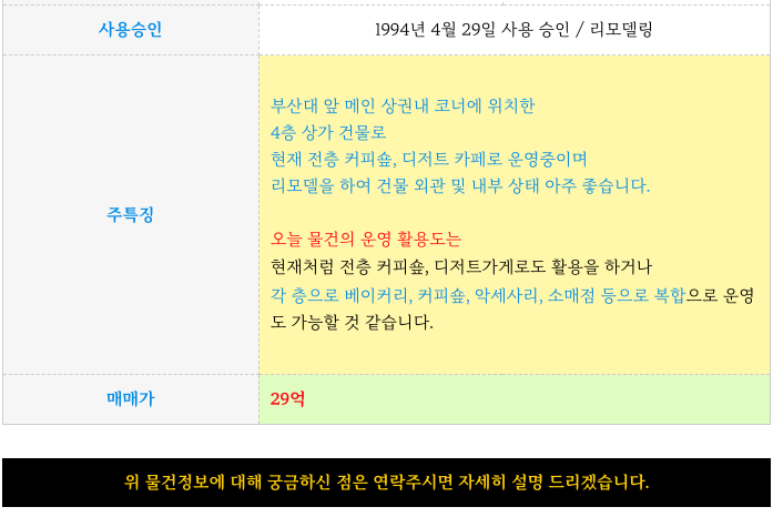 3) 부산대 장전동 메인상권 아주 이쁜 4층 상가 빌딩 건물 정보 정리하여 드립니다.