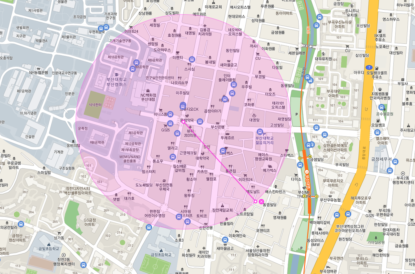 - 부산대학교 장전동 도로변 코너 위치