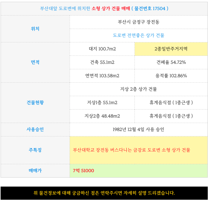 4) 부산대앞 도로변에 위치한 소형 상가 건물 매매