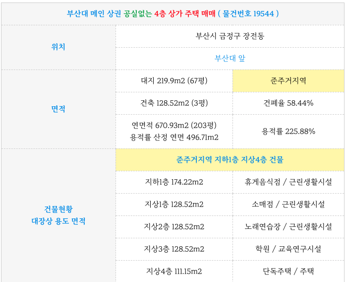 1) 부산대 정문 3분거리 공실없는 4층 상가 주택 건물