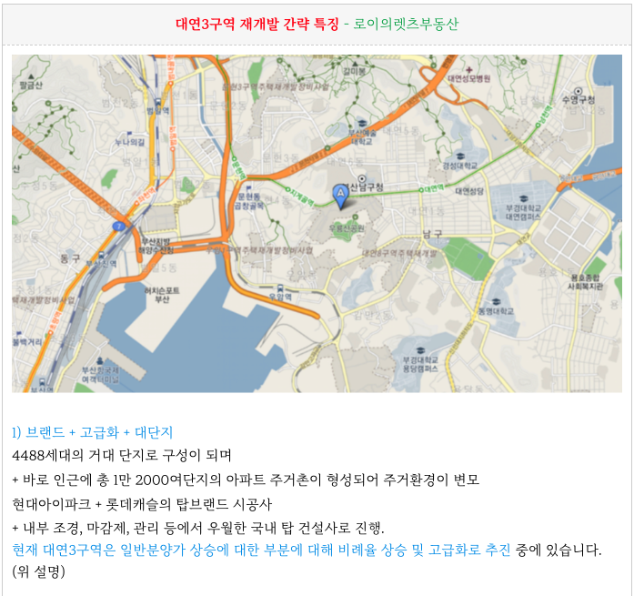 대연3구역 재개발 간략한 특징 정리 해드립니다.