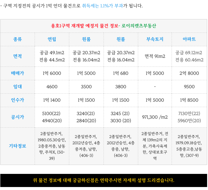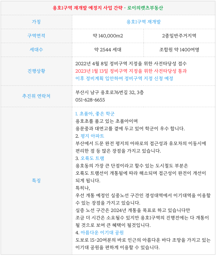 용호1구역 재개발 예정지의 추가적인 정보등은 아래 페이지를 참고 부탁드립니다.