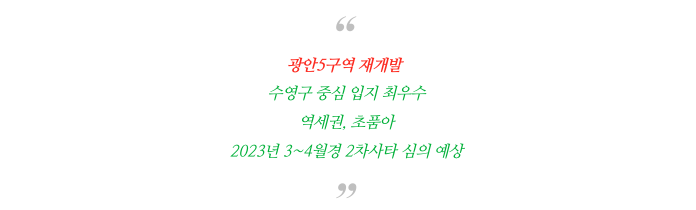 " 광안5구역 재개발 : 1.2 인수 급매 " + 3~4월 2차사타심의 예상