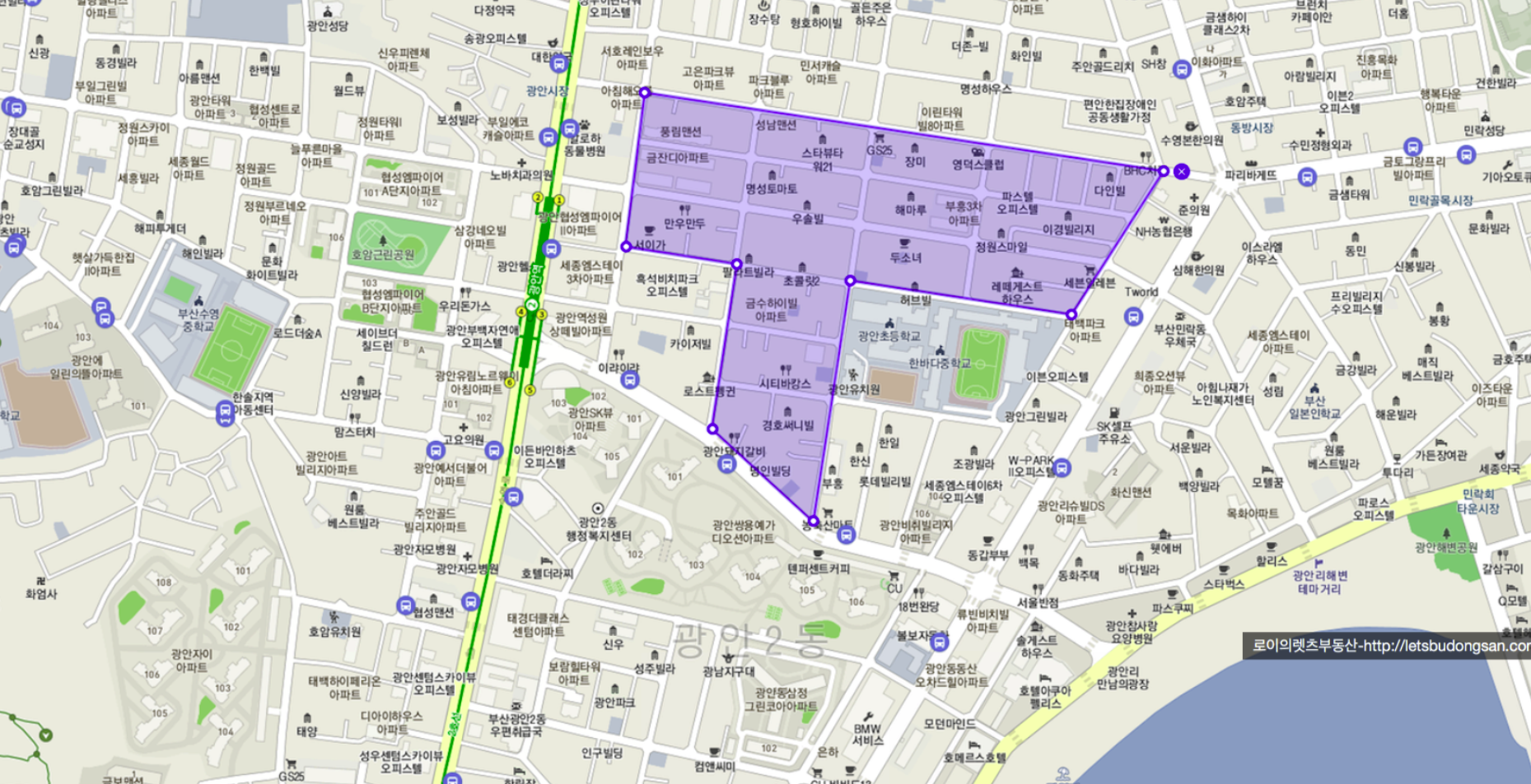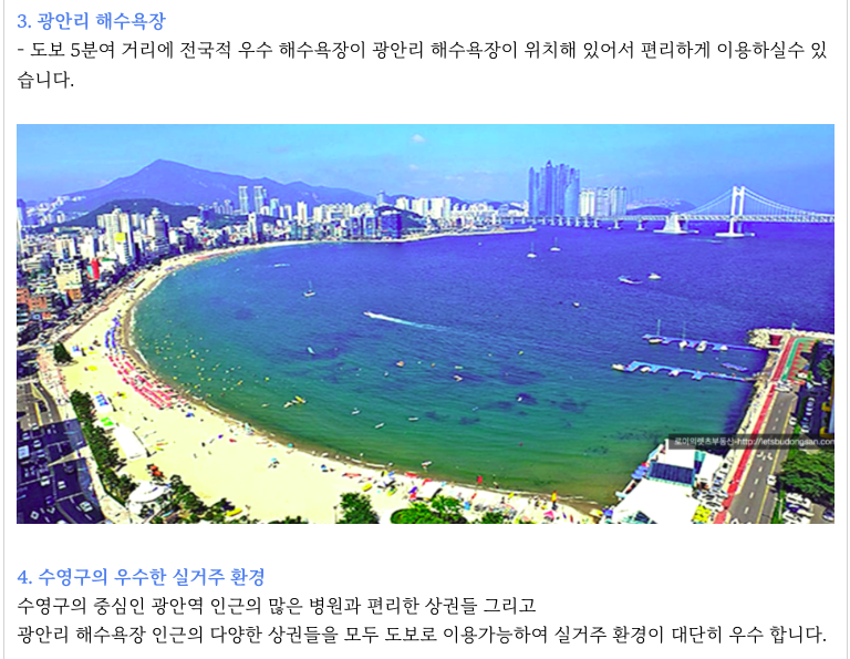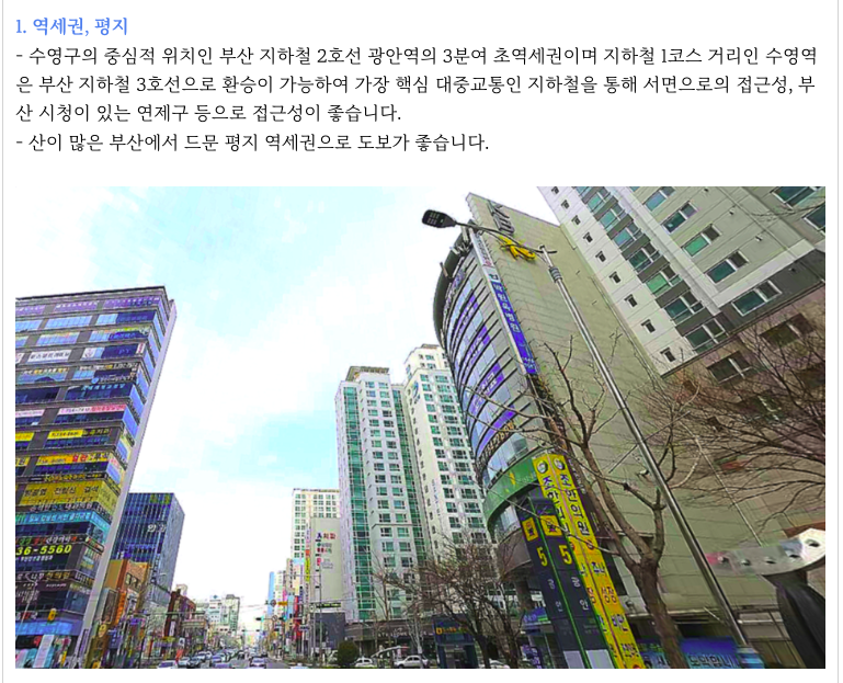 - 수영구 중심 광안동, 광안리 해수욕장, 주변시세 높은