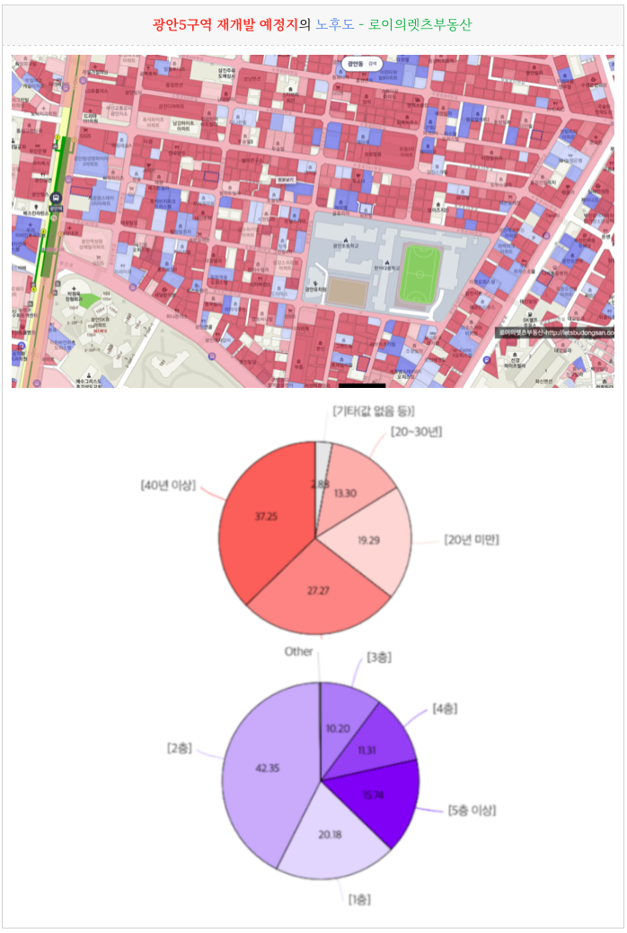 광안5구역 재개발 예정지의 노후도 부분 입니다