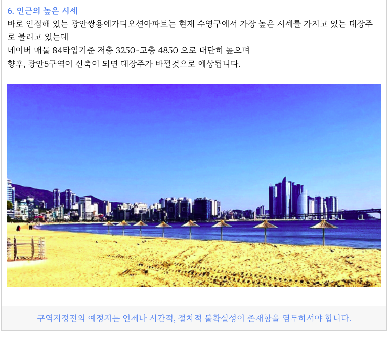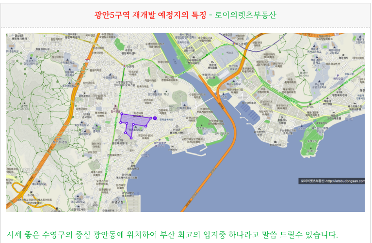 광안5구역 재개발 예정지의 특징 들을 간략히 정리하였습니다.