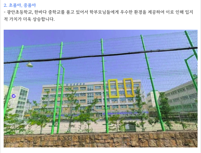 광안초등학교, 한바다 중학교를 품고 있는 초,중품아의 장점으로 입지를 더욱 빛나게 하고 있으며