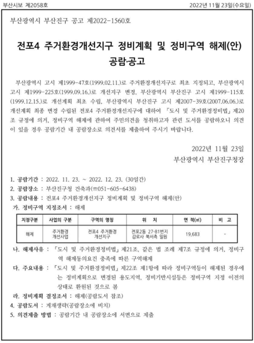 전포4지구가 조금더 빠르게 작년 11월 해제 공람공고를 하였고