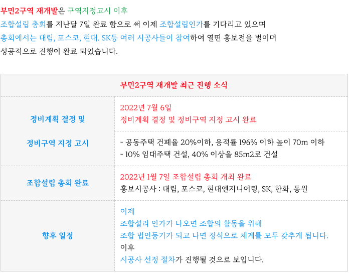 부민2구역 재개발의 현재까지 진행 상황 정리등 추가 정보는 아래 페이지를 참고 부탁드립니다.