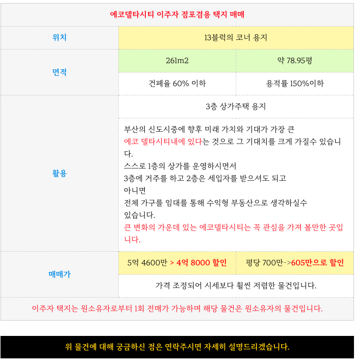 | 부산 에코델타시티 점포겸용 택지 매매 ( 이주자 택지 ) (0) | 2022.12.17 |