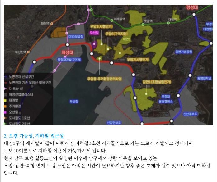 대연동 재개발 대장인 대연3구역과 맞붙어 있고 그 옆으로 도로가 새롭게 개통이 될 예정으로