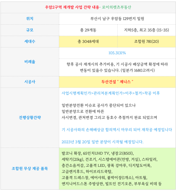 북항바다뷰 우암2구역 재개발 일반분양일정과 분양가 그리고 조합원 입주권 84타입 급매물 소개해 드립니다.