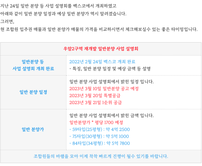 우암2구역 재개발의 일반 분양 전환등 지금까지의 진행상황등 추가 정보는 아래 페이지를 참고 부탁드립니다.