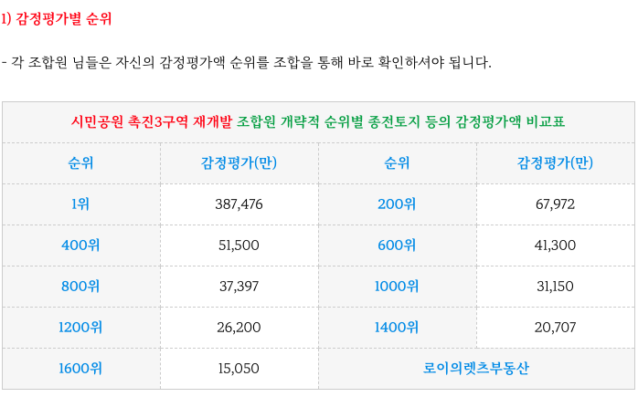 시민공원 촉진3구역 재개발 조합원 감정평가 확정된 물건 정보 소개해 드리겠습니다.