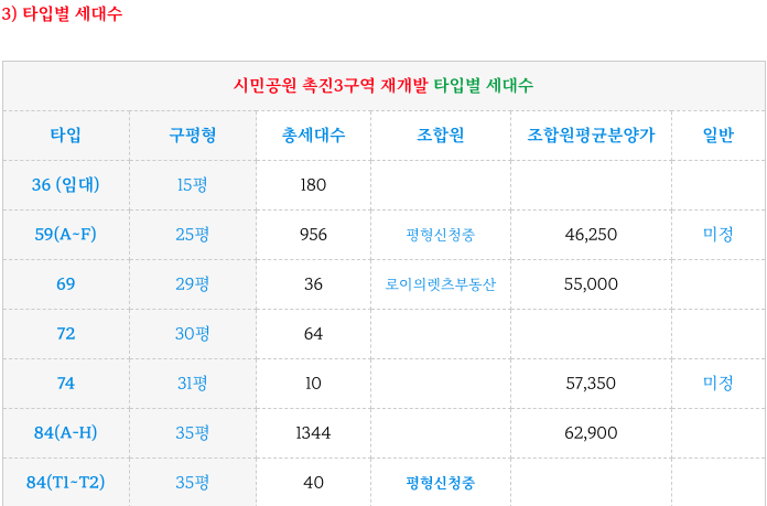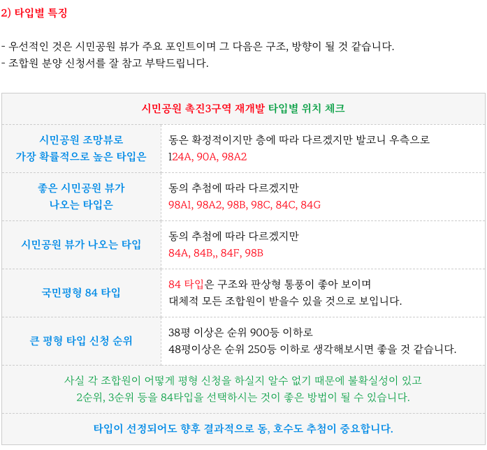 [ 시민공원 촉진3구역 재개발 조합원 평형 신청 참고 사항 ]