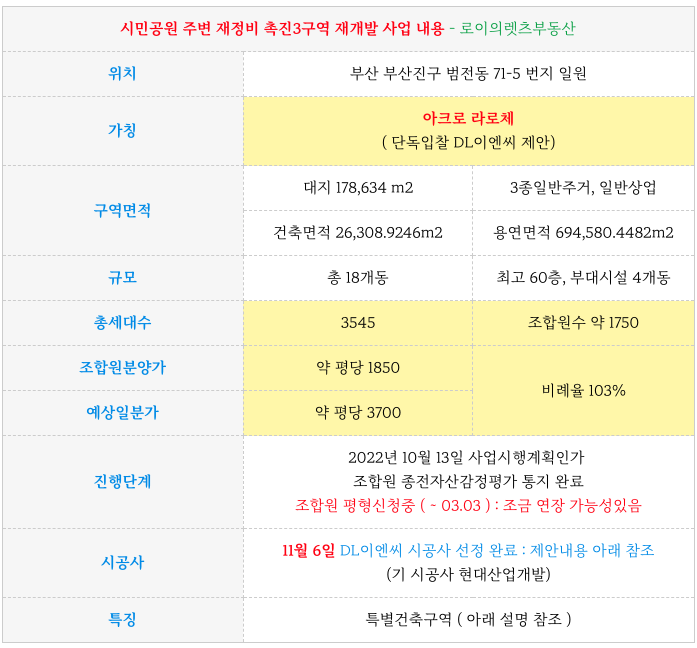 촉진3구역 재개발의 새로운 시공사로 선정된 DL이엔씨 제안 내용을 간략히 정리 드립니다.