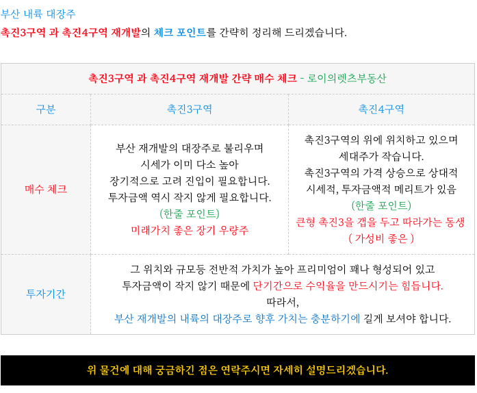 촉진3구역 과 촉진4구역 재개발의 체크 포인트를 간략히 정리해 드리겠습니다.